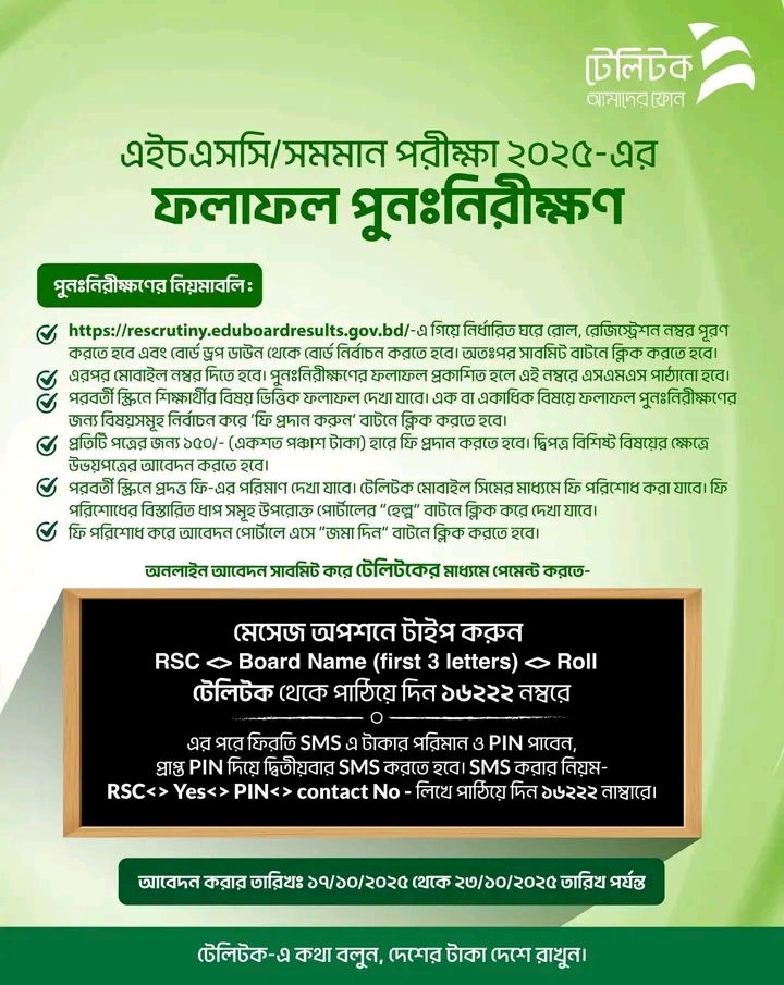 এইচএসসি/সমমান পরীক্ষা ২০২৫-এর ফলাফল পুনঃনিরীক্ষণ (Board Challenge) এর খুঁটিনাটি:
